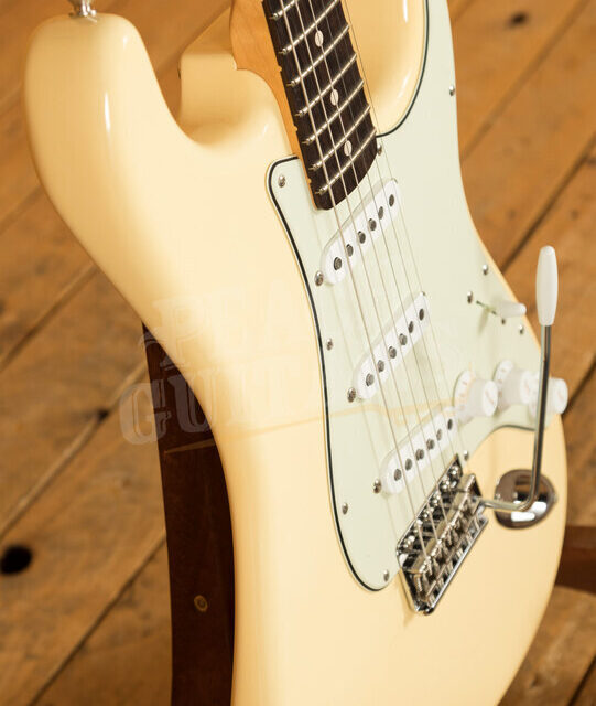 Other premium features include 9.5 radius, 21 narrow tall (6105) frets, 5-way switch, 3-ply mint green pickguard, Custom Shop vintage synchronized tremolo, vintage-style tuning machines, bone nut, wing string tree with tall metal spacer, deluxe hardshell case, strap and certificate of authenticity.